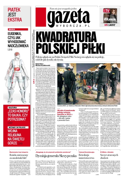 Policja ogląda się na Polski Związek Piłki Nożnej, ten ogląda się na policję, a kibole jak dymili, tak dymią; wiceszef MON gen. Waldemar Skrzypczak podał się wczoraj do dymisji; szczyt unijnego Partnerstwa Wschodniego w stolicy Litwy to zaprzepaszczona szansa na szybsze zbliżenie Kijowa z Zachodem; rząd będzie musiał wyznaczyć górną granicę opłat za zagospodarowanie odpadów – tak nakazał Trybunał Konstytucyjny; jak Rosjanie wygrywali wojnę w kinie; wchodzący dziś do kin „Stalingrad” Fiodora Bondarczuka to batalistyka najwyższej próby; Małgorzata Glinka, najwybitniejsza polska siatkarka, pomoże reprezentacji w styczniowych kwalifikacjach na mistrzostwa świata, a później na mundialu; dziś o godzinie 10. kwalifikacjami sprintu klasykiem w maleńkiej stacji narciarskiej Ruka na dalekiej północy rozpoczyna się Ruka Triple.