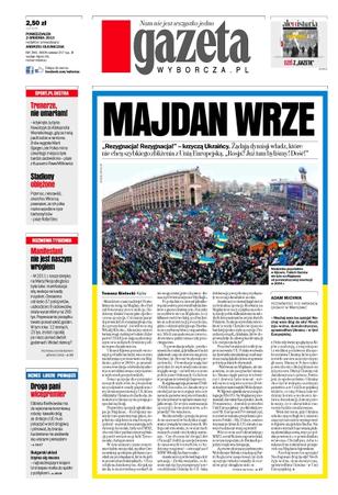 Majdan wrze – „Rezygnacja! Rezygnacja!” – krzyczą Ukraińcy – żądają dymisji władz, które nie chcą szybkiego zbliżenia z Unią Europejską, „Rosja? Już tam byliśmy! Dość!”; stadiony oblężone – przemoc, nienawiść, anarchia – Włosi są przerażeni, że ich piłka nożna wpadła w ręce barbarzyńców; manifestant nie jest naszym wrogiem – w 2011 r. nasza taktyka na Marsz Niepodległości była taka: manifestacja siły, reakcja na każdy incydent – obrażenia odniosło 37 policjantów, uszkodzono 9 radiowozów, straty wyceniliśmy na 260 tysięcy złotych, przywracanie porządku trwało ponad sześć godzin – w tym roku: 12 rannych, 23 tys. zł strat i spokój po nieco ponad dwóch godzinach; bułgarski układ trzyma się mocno – najbiedniejszym krajem Unii trzęsie mafia do spółki z politykami; „Trenerze, nie umarłam!” – krzyknęła Justyna Kowalczyk do Aleksandra Wierietielnego, gdy za metą padli sobie w ramiona.