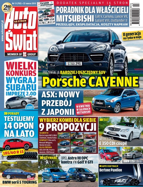 Auto Świat to najpopularniejszy w Polsce magazyn dla pasjonatów motoryzacji. Czytelnicy znajdą w tygodniku prezentacje najnowszych samochodów, opisy jazd testowych, a także raporty o sprawach ważnych dla kierowców np. zmianie przepisów ruchu drogowego. Każdy numer tygodnika zawiera testy samochodów, porównania wybranych modeli, porady dotyczące eksploatacji auta i odpowiedzi ekspertów na pytania czytelników.