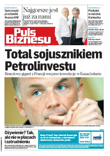 Spadające realnie łączne pensje pracowników obniżają koszty prowadzenia biznesu, ale w znacznym stopniu ograniczają przychody firmy; francuski inwestor wesprze spółki Ryszarda Krauzego w Kazachstanie; spółki telekomunikacyjne zapowiadają, że razem wdrożą w Polsce unikatowy model biznesu; większość stacji paliwowych w Polsce wzbogaci swoją ofertę o usługi hotelowe; Orlen i Lotos liczą na to, że rok 2010 przyniesie im olbrzymie zyski.