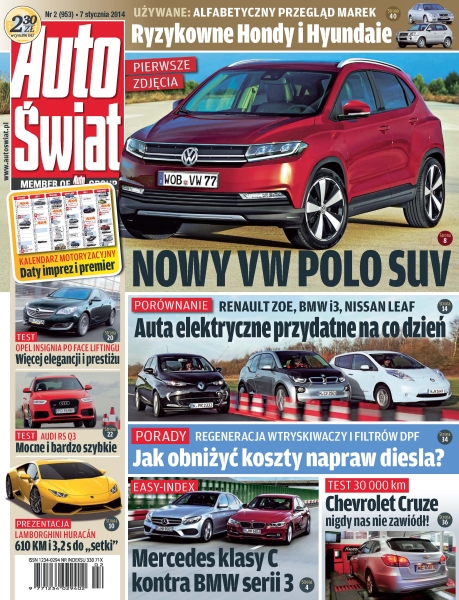Mercedes klasy C kontra BMW serii 3 – porównanie walorów użytkowych nowego Mercedesa i jego najgroźniejszego rywala; mały SUV Volkswagena – pierwsza prezentacja modelu skonstruowanego na bazie Polo; Lamborghini Huracán – następca Gallardo napędzany 610-konnym V10; superbolidy na 24-godzinny wyścig na torze w Le Mans; BMW i3, Nissan Leaf i Renault Zoe – porównanie samochodów z napędem elektrycznym; Opel Insignia – hatchback po face liftingu w wersji 1.6T; Audi RS Q3 – kompaktowy SUV w supermocnej wersji sportowe.