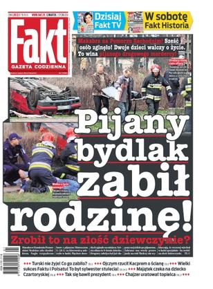 Pijany bydlak zabił rodzinę – czy zrobił to na złość dziewczynie – sześć osób zginęło, dwoje dzieci walczy o życie; latają po świecie badać klimat za nasze – ponad 800 tys. zł kosztowały podatników wycieczki urzędników; Andrzej Turski nie żyje, co go zabiło – zmarłego dziennikarza wspominają współpracownicy; „Pokochałam Andrzeja od pierwszego wejrzenia” – historia Marioli Gołoty specjalnie dla Faktu; awantura o Miśkiewicza – trwa wojna piłkarskich agentów o świetnego i niedrogiego bramkarza; ojciec zabił dzieci i powiesił się w celi – potworna zbrodnia we Francji; Putin wypowiedział wojnę terrorystom przed zimowymi igrzyskami w Soczi.