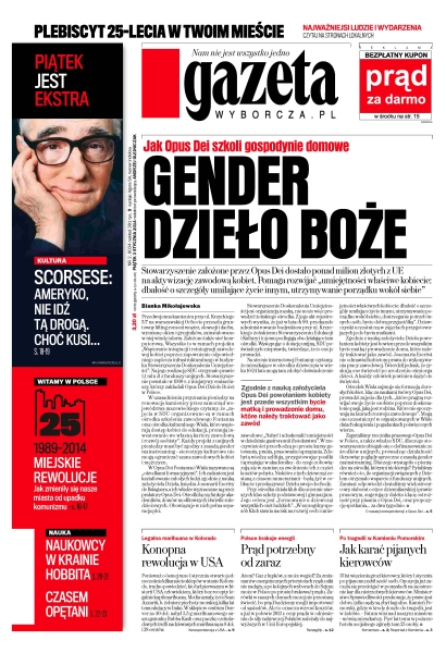 Gender dzieło boże – jak Opus Dei szkoli gospodynie domowe – stowarzyszenie założone przez Opus Dei dostało ponad milion złotych z UE na aktywizację zawodową kobiet – pomaga rozwijać „umiejętności właściwe kobiecie: dbałość o szczegóły umilające życie innym, utrzymywanie porządku wokół siebie”; konopna rewolucja w USA – legalna marihuana w Kolorado; prąd potrzebny od zaraz – Polsce brakuje energii; jak karać pijanych kierowców – po tragedii w Kamieniu Pomorskim; miejskie rewolucje – jak zmieniły się nasze miasta po upadku komunizmu; „Ameryko, nie idź tą drogą. Choć kusi...” – Martin Scorsese.