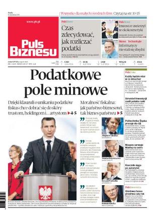 Podatkowe pole minowe: dzięki klauzuli o unikaniu podatków fiskus chce dobrać się do skóry trustom, holdingom i... artystom; moralność fiskalna: jak państwo biznesowi, tak biznes państwu; czas zdecydować, jak rozliczać podatki; inwestor uwierzył w ekokosmetyki; informatycy nie stali się zbędni; każdy będzie miał w co dmuchać – czy w każdym aucie trzeba będzie mieć alkomat; strumień inwestycji zasili polskie rzeki; Politechnika Śląska pracuje dla GE; Maspex serwuje Malmę na ostro; rzecznik ubezpieczonych sięga po autorytet Sądu Najwyższego; giełdowa hossa przetrwa cały rok.
