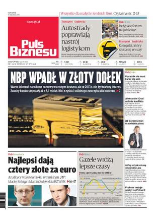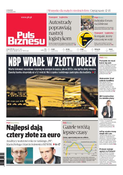 NBP wpadł w złoty dołek; autostrady poprawiają nastrój logistykom; podatnik nie musi karać się sam; indyjskie forum na jubileusz; analitycy walutowi roku w rankingu „PB”; Gazele wróżą lepsze czasy; Aleksander Grad uniknie konfliktu; JW Construction ma wielkie plany; mPay uzyska masę dzięki sile Lwa; Prokom testuje apetyt na Polnord.