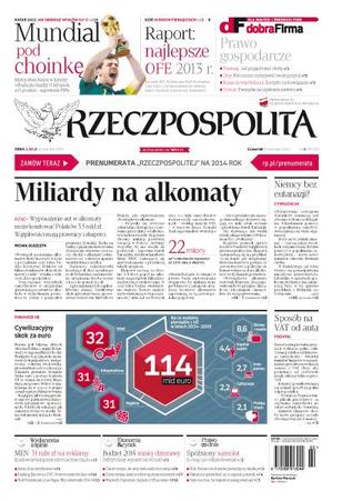 Miliardy na alkomaty; fundusze UE: cywilizacyjny skok za euro; mundial w Katarze pod choinkę; raport: najlepsze OFE 2013 r.; czy Niemcy będą bez eutanazji; sposób na VAT od auta; MEN: 31 mln zł na reklamy; Ateny chcą wytchnienia; ranking filmów na DVD: powrót mistrzów kina; hity elektroniki 2014 na targach CES; budżet 2014 mniej dziurawy – deficyt może wynieść mniej niż 40 mld zł; cukier tanieje, ale ceny czekolady nie maleją; coraz wyższe zyski mediów społecznościowych; Wojciech Olejniczak: dopłaty z UE za niskie; spóźniony samolot – do kogo po odszkodowanie; NSA: Krauze nie dostanie pieniędzy za działkę; fiskus ma sprawdzać, za co zapłaci podatnik; Sejm nie chce, by inspektor zastępował sąd.