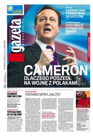 Dlaczego Cameron poszedł na wojnę z Polakami; Jan Klata: każdego dnia trzeba ginąć za ojczyznę; czas obalić cyfrowych bogów; islamskie państwo Syria; pożyczałyśmy, bo się bałyśmy – zeznała teściowa Marka Dochnala na procesie Doroty K. dziennikarki „Gazety Polskiej”; Giertych wygrał z hejterami; skarbówka potyka się o VAT; zamach na El Clásico.
