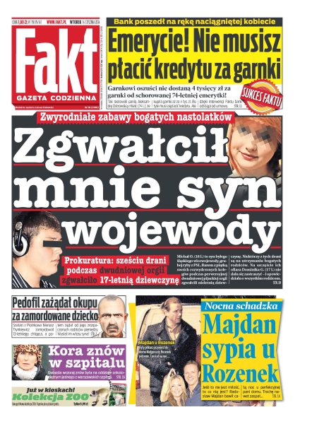Dlaczego dziś piraci drogowi skutecznie unikają sprawiedliwości; Piotr Szeliga wynajmował wygodne łoże w eleganckim hotelu pod Lublinem – rachunki za te piękne noce pokryła Kancelaria Sejmu; szef WOŚP stanowczo zaprzecza, że zbił kokosy na swojej Fundacji; Radosław Majdan nie tylko odwiedza perfekcyjną panią domu za dnia, ale też zostaje u niej na noc; kto poprowadzi taniec z gwiazdami; czy Kora chce wynieść się z Warszawy; Andrzej Rudy – mogłem być