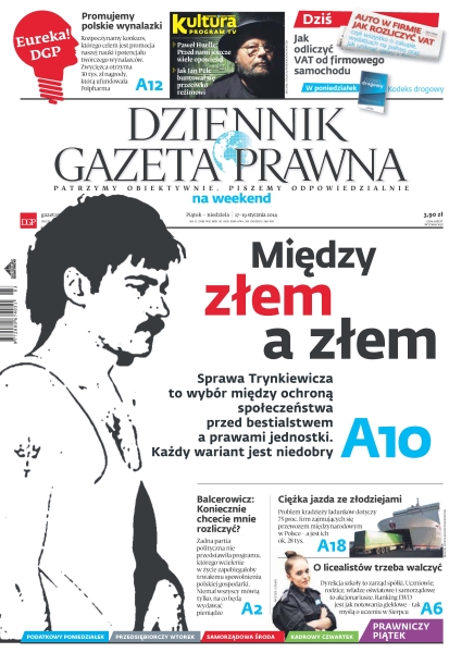 Dodatki: Gazeta Prawna, Prawnik, Forum przedsiębiorczości, Prawo na co dzień, Auto w firmie, Kultura i program TV.