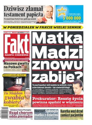 Prokurator Zbigniew Grześkowiak uważa, że Katarzyna Waśniewska może znów wrócić na drogę przestępstwa; dlaczego karetka wozi drzwi zamiast chorych; Dziwisz łamie testament Ojca Świętego; jak ksiądz zrobił z ludzi chłopów pańszczyźnianych; spłonęła matka z dziećmi; Natalia Siwiec za pobyt na Malediwach dostanie 20 000 złotych; gdzie Majdan harcuje z kobietami; rządy kolejnych państw stawiają na rozwój unii kredytowych; nieszczęśliwy wypadek naszej najlepszej narciarki; Robert Kubica znów wypadł z trasy; Polacy wreszcie wygrali i w turnieju mogą nawet walczyć o medal; Krzysztof Hołowczyc znów miał pecha na pustynnej trasie.