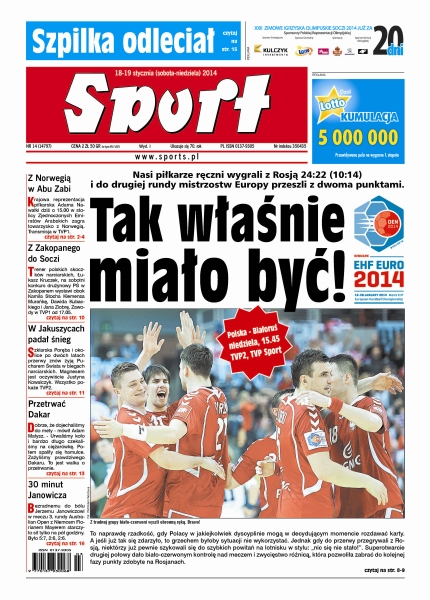 Nasi piłkarze ręczni wygrali z Rosją 24:22 (10:14) i do drugiej rundy mistrzostw Europy przeszli z dwoma punktami; dzisiaj w Abu Zabi reprezentacja Polski złożona z piłkarzy występujących na co dzień w kraju zagra towarzysko z Norwegią; Messi wrócił do gry i strzela gole, za to mistrz