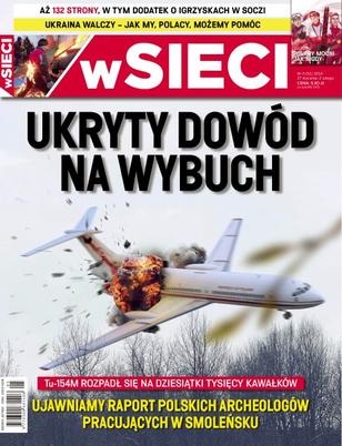 Ukryty dowód na wybuch – ujawniamy raport polskich archeologów pracujących w Smoleńsku – Tu-154M rozpadł się na dziesiątki tysięcy kawałków; dlaczego zginął konsul – czy polskie Ministerstwo Spraw Zagranicznych powinno dbać o naszych dyplomatów – pytanie zdaje się retoryczne, w kontekście tego, co spotkało I sekretarza naszej ambasady w Bejrucie Wojciecha Gawrysiuka, można mieć jednak poważne wątpliwości; książę Ciemnogrodu – po 18 latach wznowiono bestseller Wojciecha Cejrowskiego „Kołtun się jeży” – to wspaniały materiał do porównania Polski lat 90. i czasów obecnych, choć szkoda, że tekst został poddany tak dalece idącej redakcji; gwiazda z sąsiedztwa – całkiem niedawno Jennifer Lawrence została rekordzistką – żadnej z aktorek ubiegających się dotychczas o Oscara nie udało się w takim wieku zdobyć trzech nominacji z rzędu; przyjemność w cząsteczkach – żaden film nie wzbudza dziś takich emocji jak premiery kolejnych sezonów najpopularniejszych seriali albo nowych formatów – pod tym względem rok 2014 obiecuje wiele.