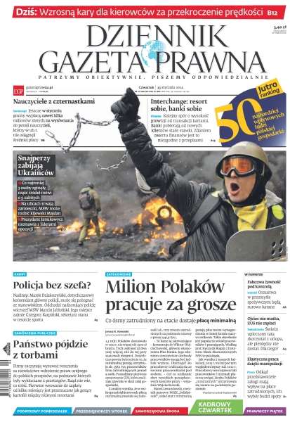 Dziennik Gazeta Prawna – codziennie obiektywne i rzetelne informacje z kraju i ze świata. Piszemy o tym, co dziś ważne i odpowiadamy na Wasze pytania – szczególnie te związane z obecnymi wyzwaniami tj. pandemia, praca zdalna. Na bieżąco wyjaśniamy zmieniające się przepisy. Wspieramy się wyjaśnieniami ministerstw i urzędów. Pomagamy unikać błędów i ostrzegamy, jakie są kary. Ponadto w każdy piątek specjalne magazynowe wydanie Dziennika Gazety Prawnej w całości z tekstami społeczno-ekonomicznymi.