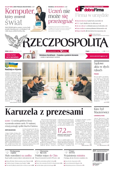 Co szósta giełdowa firma wymieniła ostatnio szefa, w większej rotacji pomogły spółki Skarbu Państwa; 30 lat temu Jobs pokazał światu Macintosha; likwidacja WSI – kim był Macierewicz; mało eurodzieci na zasiłku – rząd rzadko wspiera dzieci cudzoziemców; polskie mięso do Chin – eksport żywności wzrósł o 150 proc.