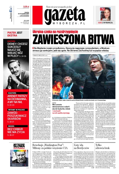 Ukraina czeka na rozstrzygnięcie – na Majdanie rozejm przedłużony, opozycja negocjuje z prezydentem, a Moskwa straszy go sankcjami, jeśli się ugnie; rewelacje „Washington Post”: Miliony za polskie więzienie CIA; listy idą na Berdyczów – trwa największy eksperyment w historii polskiego wymiaru sprawiedliwości; PO i PSL będą bronić ministra Arłukowicza przed PiS-owskim wnioskiem o wotum nieufności – głosowanie dzisiaj.