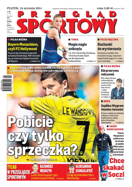 Incydent z Lewandowskim – pobicie czy tylko czy tylko sprzeczka; Thomas Morgenstern szybko wraca szybko do zdrowia po upadku w Bad Mitterndorf, austriacki skoczek Austriacki chce wystartować w igrzyskach; po przerwie zimowej rozgrywki wznawia Bundesliga. Nikt nie łudzi się, że mistrzem będzie inny klub niż Bayern; 1:6, 2:6 z Dominiką Cibulkovą i fi nał Australian Open nie dla Agnieszki Radwańskiej.