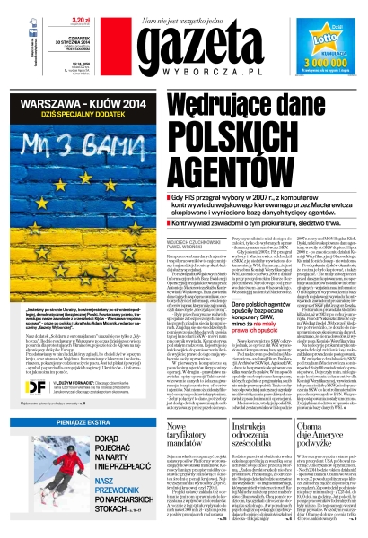 Wędrujące dane polskich agentów – gdy PiS przegrał wybory w 2007 r., z komputerów kontrwywiadu wojskowego kierowanego przez Macierewicza skopiowano i wyniesiono bazę danych tysięcy agentów, kontrwywiad zawiadomił o tym prokuraturę, śledztwo trwa; nowe taryfikatory mandatów – Sejm ma wkrótce rozpatrzyć projekt ustawy posłów Platformy wprowadzający nowe stawki mandatów, kierowcy łamiący przepisy mieliby dostawać grzywny stanowiące odsetek średniej pensji krajowej; instrukcja odroczenia sześciolatka – rodzice przeciwni obniżeniu wieku szkolnego próbują za wszelką cenę uchronić swoje dzieci przed tą reformą; Obama daje Ameryce podwyżkę – w dorocznym orędziu o stanie państwa prezydent USA próbował natchnąć Amerykanów optymizmem; powrót wiary w państwo – PO i PiS, prawica i lewica, a nawet duża część biznesu oczekują rosnącego zaangażowania państwa w gospodarkę – pobudki mają różne, ale kierunek ten sam.
