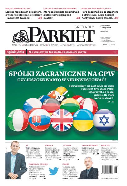 Sprawdziliśmy, jak zachowują się akcje wszystkich firm spoza Polski notowanych na naszej giełdzie – piszemy, na które warto postawić; Tauron stara się o pieniądze z PIR na nowe projekty; konsolidacja w branży spożywczej: które spółki będą przejmować, a które same pójdą pod młotek; pora pożegnać się ze strachem o strefę euro – akcje Starego Kontynentu dadzą zarobić; Andrzej Przybyło, który stoi na czele AB, zapewnia, że on i jego żona nie będą sprzedawać kolejnych pakietów akcji; doradztwo przy ofertach publicznych było dla maklerów w 2013 r. ważnym źródłem przychodów – czy w tym roku będzie podobnie; inwestorzy detaliczni mają coraz mniejsze szanse na zakup obligacji korporacyjnych renomowanych instytucji; spółki tygodnia, czyli których firm unikać, a w które warto zainwestować; fałszowanie statystyk, nacjonalizacje i dewaluacja peso – tak wyglądają fatalne dla argentyńskiej gospodarki rządy prezydent Cristiny Kirchner; media społecznościowe zyskują na znaczeniu, jednak w Polsce spółki i inwestorzy wciąż jak ognia unikają Facebooka i Twittera; to, że dług ciągle narasta, pozostaje dużym problemem Europy i ryzykiem dla rynków finansowych – uważa Piotr Lebiedziński, szef zespołu analiz z Banku BPS.