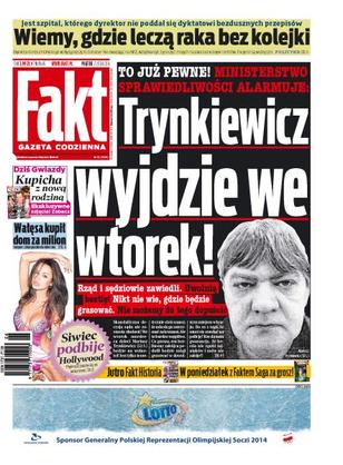 To już pewne: Trynkiewicz we wtorek wyjdzie na wolność; wiemy, gdzie leczą raka bez kolejki; Wałęsa kupił dom za milion; Siwiec podbije Hollywood; minister Rostowski nam podniósł podatki, a europosłom zmniejszył; szef WSI ujawnia: synowie Kuklińskiego żyją w Ameryce; ile zarabiają Polacy; BOR ochraniał prywatną balangę pani premier; na studniówkę jak na wesele; Kondrat z kochanką kupuje mieszkanie.