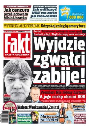 Biegli alarmują: Trynkiewicz znów zaatakuje; Wałęsa w rok zarabia 1,2 mln zł; Stoch idzie na wojnę; Bieńkowska ma torebkę za 2200 zł; Rozenek pokazała całe nogi; emeryt opowiada o tym, jak pobili go garnkowi cwaniacy; Isabel i Kazimierz już razem nie mieszkają; Bogusław Kaczyński w obronie kultury; rząd łupi nas podatkami; jak cenzura prześladowała Misia Uszatka; jak odliczyć VAT na auto po nowemu.