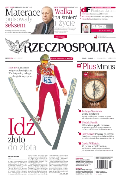W Austrii, Niemczech i USA wypływają dzieła zrabowane przez Niemców z Muzeum Narodowego w Warszawie; tylko 2 proc. uczniów w ostatnim roku nauki potrafi bezbłędnie zinterpretować tekst i logicznie to uzasadnić; donosy, buntowanie klientów, kradzieże, groźby – tak się mszczą wylani z roboty; w Izraelu rozpoczęła się wojna religijna – wygląda na to, że tym razem ultraortodoksi nie wygrają; władze w Pekinie zaczyna niepokoić tempo, w jakim najzamożniejsi i najlepiej wykształceni Chińczycy decydują się dziś na emigrację; zdymisjonowana przez premiera Małgorzata Krasnodębska-Tomkiel wchodziła decyzjami rządowi w paradę; najważniejszy na świecie konkurs fotograficzny wygrał Amerykanin John Stanmeyer; testowana w Polsce metoda neurochirurgiczna otwiera nową erę w leczeniu mózgu – mówi wybitny uczony; miejscowi zastanawiają się, jaka będzie przyszłość Soczi i okolic; Kamil Stoch w sobotę chce wskoczyć do historii polskiego sportu.