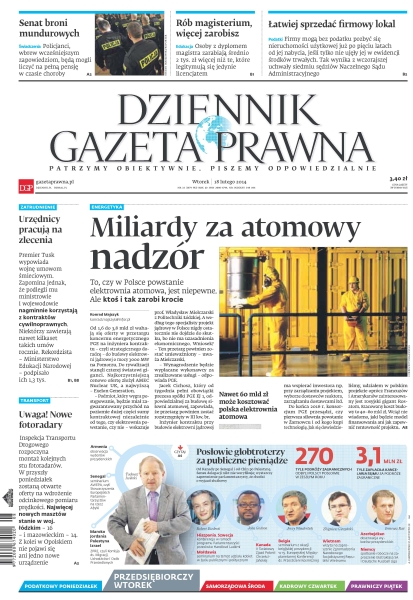 Dziennik Gazeta Prawna – codziennie obiektywne i rzetelne informacje z kraju i ze świata. Piszemy o tym, co dziś ważne i odpowiadamy na Wasze pytania – szczególnie te związane z obecnymi wyzwaniami tj. pandemia, praca zdalna. Na bieżąco wyjaśniamy zmieniające się przepisy. Wspieramy się wyjaśnieniami ministerstw i urzędów. Pomagamy unikać błędów i ostrzegamy, jakie są kary. Ponadto w każdy piątek specjalne magazynowe wydanie Dziennika Gazety Prawnej w całości z tekstami społeczno-ekonomicznymi.