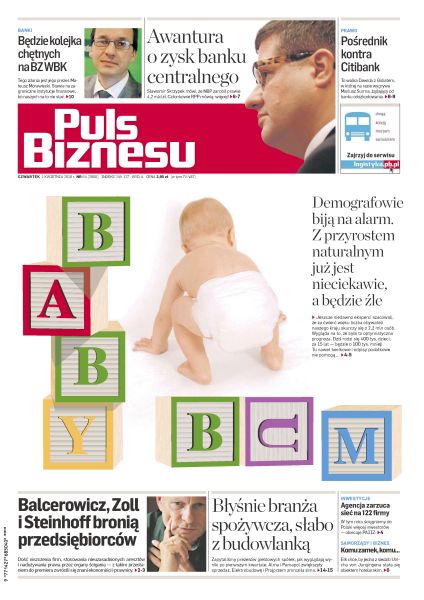 Demografowie biją na alarm – z przyrostem naturalnym już jest nieciekawie, a będzie źle; Leszek Balcerowicz, Andrzej Zoll i inne autorytety mówią: stop patologiom władzy; o miliardach złotych do budżetu decydować będą kruczki prawne; Polska poluje w tym roku na 122 zagraniczne firmy; najczęściej sprzedawany bank w Polsce poszedł pod młotek; operatorzy pocztowi czekają na efekty upadłości konkurenta; największą niewiadomą najbliższego sezonu raportów będą wyniki spółek, którym przeszkadzała ostra zima; miniony tydzień był siódmym z rzędu tygodniem zwyżki WIG20; notowania metalu są już bliskie rekordom, a kurs KGHM utrzymuje się powyżej 100 zł.