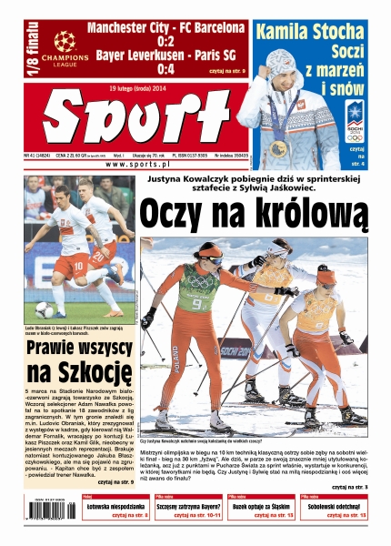 Justyna Kowalczyk pobiegnie dziś w sprinterskiej sztafecie z Sylwią Jaśkowiec; Kamil Stoch dzień przed wyjazdem z Soczi opowiedział nam o imprezie życia, komu należy się podwyżka i kiedy wybuduje w Zębie dom; Tina Maze zdobyła dla Słowenii obydwa złote medale; Koen Verweij długo nie mógł się pogodzić z tym, że złoto na 1500 m przegrał ze Zbigniewem Bródką zaledwie o 0,003 sek. wygląda na to, że rozczarowanie wreszcie zostawił za sobą.