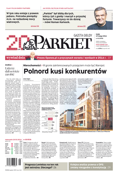 Największy w Polsce newsroom gospodarczy zbiera, analizuje i zgłębia dla Państwa najważniejsze informacje ze świata finansów. Codzienne wydanie „Parkietu”, sześć dni w tygodniu, to kilkadziesiąt artykułów o emitentach, instytucjach finansowych, gospodarce. To również opinie, felietony i wywiady z najważniejszymi ludźmi krajowej i globalnej finansjery.