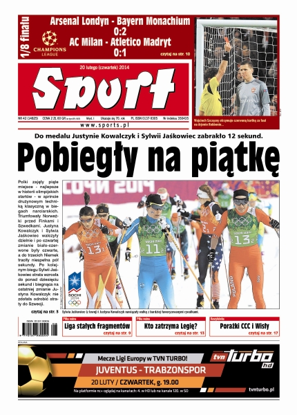 Pobiegły na piątkę – do medalu Justynie Kowalczyk i Sylwii Jaśkowiec zabrakło 12 sekund; trener niepotrafiący ochrzanić – przed polskimi skoczkami Puchar Świata w Falun; Amerykanin Ted Ligety potwierdził w Soczi swoją supremację w slalomie gigancie; Ole Einar Bjoerndalen mimo 40 lat zdobywa kolejne medale – Polacy daleko; nieszczęsny Szczęsny – przed rokiem bramkarz Arsenalu puścił w meczu z Bayernem 3 gole, teraz żadnego, ale w 37 minucie został usunięty z boiska.