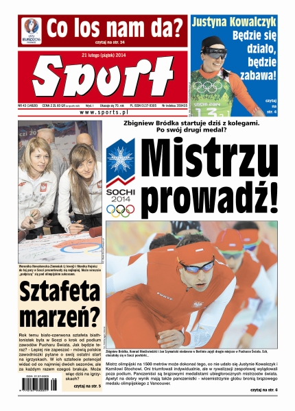 Przed Kamilem Stochem jeszcze dziesięć startów w Pucharze Świata i rywalizacja w mistrzostwach globu w lotach, tymczasem bohaterowi igrzysk ubywają rywale; ciekawy wywiad z Justyną Kowalczyk; rok temu biało-czerwona sztafeta biathlonistek była w Soczi o krok od podium zawodów Pucharu Świata – jak będzie teraz; Zbigniew Bródka rusza w drogę po kolejny olimpijski medal w Soczi, tym razem z kolegami.