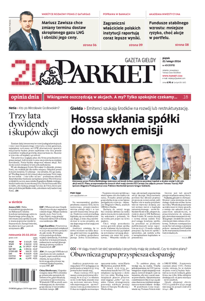 Największy w Polsce newsroom gospodarczy zbiera, analizuje i zgłębia dla Państwa najważniejsze informacje ze świata finansów. Codzienne wydanie „Parkietu”, sześć dni w tygodniu, to kilkadziesiąt artykułów o emitentach, instytucjach finansowych, gospodarce. To również opinie, felietony i wywiady z najważniejszymi ludźmi krajowej i globalnej finansjery.