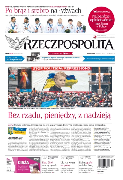 Bez rządu, pieniędzy, z nadzieją – Ukraina jest wolna, lecz dziś nikt nie wie, jaką wybierze drogę, tym bardziej że stoi na skraju bankructwa; po brąz i srebro na łyżwach – mężczyźni w dramatycznej walce o brąz pokonali Kanadę – panie w finale uległy Holenderkom, a wcześniej wygrały z Rosją; Euro 2016, znamy rywali – Niemcy, Irlandia, Szkocja, Gruzja, Gibraltar – z nimi w eliminacjach; ukryta wojna na polisy – ceny za ubezpieczenia spadły w 2013 roku o około 20 procent; fiskus gnębi rzetelne firmy – ściganie znikających oszustów podatkowych jest trudniejsze; wszystkie grzechy Europy – wraz z odejściem Wiktora Janukowycza i powrotem Julii Tymoszenko Europa dostaje kolejną szansę na zmazanie grzechu zaniechania popełnionego po pomarańczowej rewolucji, gdy nie zrobiono wiele, by pociągnąć Ukrainę na Zachód; wielki wysyp samobójców – ponad 8,5 tys. osób próbowało w zeszłym roku odebrać sobie życie – to radykalny skok w porównaniu z 2012 rokiem.