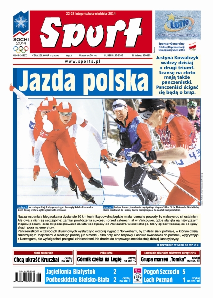 Justyna Kowalczyk walczy dzisiaj o drugi triumf; szansę na złoto mają także panczenistki. Panczeniści ścigać się będą o brąz; Karolina Riemen-Żerebecka zajęła 15. miejsce, poprawiając o jedną lokatę wynik z Vancouver; polski trener skoczków wszedł do grona tych, którzy mają najwięcej ofert pracy, chcą go m.in. w Kazachstanie i Rosji; hokej na lodzie – w wielkim finale spotkają się złoci medaliści dwóch poprzednich olimpiad: Kanada oraz Szwecja.