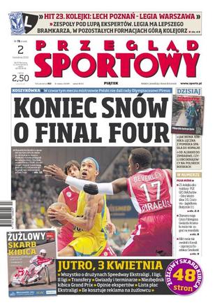 W czwartym meczu mistrzowie Polski nie dali rady Olympiacosowi Pireus; Jagiellonia zrobiła duży krok w kierunku pozostania w ekstraklasie; ligowy szlagier rozegrany zostanie przy Bułgarskiej w Wielką Sobotę; słaba forma Pawła Brożka uniemożliwia mu strzelanie goli; wywiad ze Zbigniewem Drzymałą, byłym właścicielem Groclinu-Dyskoboli Grodzisk Wlkp.; Barcelona nie dobiła Arsenalu, skończyło się na 2:2 i teraz Katalończyków czeka najtrudniejszy tydzień w sezonie; wywiad z Mariuszem Sordylem, trenerem AZS Olsztyn; Fyrstenberg i Matkowski w 52 min ograli Bryanów; przed GP Malezji Renault depcze po piętach Mercedesowi, zespołowi siedmiokrotnego mistrza świata.
