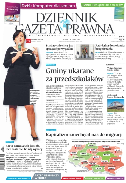Dziennik Gazeta Prawna – codziennie obiektywne i rzetelne informacje z kraju i ze świata. Piszemy o tym, co dziś ważne i odpowiadamy na Wasze pytania – szczególnie te związane z obecnymi wyzwaniami tj. pandemia, praca zdalna. Na bieżąco wyjaśniamy zmieniające się przepisy. Wspieramy się wyjaśnieniami ministerstw i urzędów. Pomagamy unikać błędów i ostrzegamy, jakie są kary. Ponadto w każdy piątek specjalne magazynowe wydanie Dziennika Gazety Prawnej w całości z tekstami społeczno-ekonomicznymi.