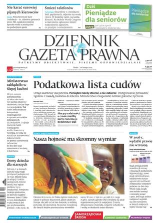 Dziennik Gazeta Prawna – codziennie obiektywne i rzetelne informacje z kraju i ze świata. Piszemy o tym, co dziś ważne i odpowiadamy na Wasze pytania – szczególnie te związane z obecnymi wyzwaniami tj. pandemia, praca zdalna. Na bieżąco wyjaśniamy zmieniające się przepisy. Wspieramy się wyjaśnieniami ministerstw i urzędów. Pomagamy unikać błędów i ostrzegamy, jakie są kary. Ponadto w każdy piątek specjalne magazynowe wydanie Dziennika Gazety Prawnej w całości z tekstami społeczno-ekonomicznymi.