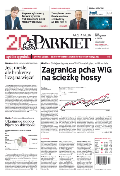 Największy w Polsce newsroom gospodarczy zbiera, analizuje i zgłębia dla Państwa najważniejsze informacje ze świata finansów. Codzienne wydanie „Parkietu”, sześć dni w tygodniu, to kilkadziesiąt artykułów o emitentach, instytucjach finansowych, gospodarce. To również opinie, felietony i wywiady z najważniejszymi ludźmi krajowej i globalnej finansjery.