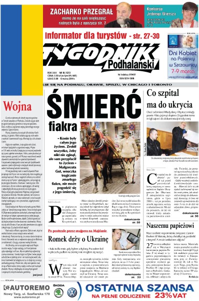 Tygodnik Podhalański to niezależne pismo regionalne – ukazuje się już od 1989 roku na terenie Podhala, Orawy, Spisza i Pienin. Od ponad dziesięciu lat dostępne jest także w Chicago i Toronto. Na jego łamach publikowane są aktualne informacje z regionu.