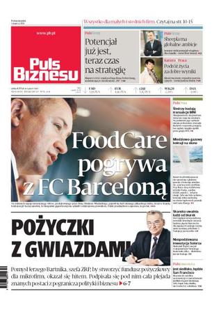 FoodCare pogrywa z FC Barceloną; pomysł Jerzego Bartnika, szefa Związku Rzemiosła Polskiego, by stworzyć fundusz pożyczkowy dla mikrofirm, okazał się hitem; śledczy badają transakcje MNI; miedziowo-gazowy koktajl na słono w rejonie Pucka; Skanska uwalnia ludzi od biurek; niespodziewana inwestycja Solorza w Mostostal Export; kluczem do zarobku na inwestycji w nieruchomość siedliskową jest lokalizacja; Sheepla ma globalne ambicje; klienci tną koszty wyjazdów motywacyjnych.
