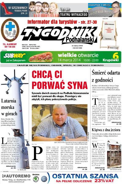 Tygodnik Podhalański to niezależne pismo regionalne – ukazuje się już od 1989 roku na terenie Podhala, Orawy, Spisza i Pienin. Od ponad dziesięciu lat dostępne jest także w Chicago i Toronto. Na jego łamach publikowane są aktualne informacje z regionu.