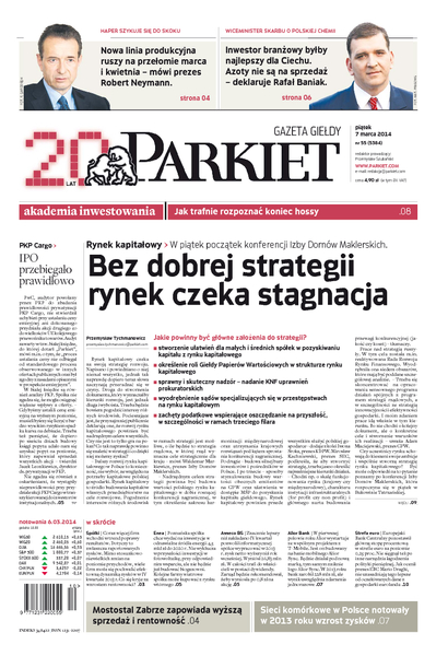 Największy w Polsce newsroom gospodarczy zbiera, analizuje i zgłębia dla Państwa najważniejsze informacje ze świata finansów. Codzienne wydanie „Parkietu”, sześć dni w tygodniu, to kilkadziesiąt artykułów o emitentach, instytucjach finansowych, gospodarce. To również opinie, felietony i wywiady z najważniejszymi ludźmi krajowej i globalnej finansjery.