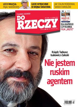 Z posłem PiS, byłym wiceministrem spraw zagranicznych, rozmawia Mariusz Staniszewski; podczas rewolucji na Ukrainie PiS i PO zyskały w sondażach kosztem rywali; Lech Wałęsa mógł być ikoną – zamiast tego stał się symbolem obciachu, kłopotliwym nawet dla bliskich mu niedawno środowisk politycznych; temat tygodnia – ks. Tadeusz Isakowicz-Zaleski; autorzy „Do Rzeczy” recenzują najnowsze hity z kin, księgarń i salonów muzycznych; z niemieckim historykiem, autorem książki „Stalin: terror absolutny”, rozmawia Piotr Zychowicz; gdy Rosja stara się zbudować drugą armię świata, dokonuje agresji na Gruzję, a potem na Ukrainę oraz oficjalnie uznaje Polskę za wroga, nasza doktryna wojenna wyklucza możliwość zbrojnego konfliktu na szeroką skalę; superwulkany wybuchają rzadko, ale za to z siłą tysiące razy większą niż typowy wulkan.