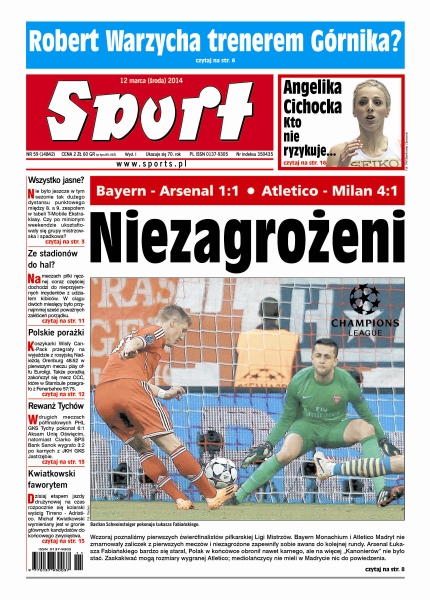 10000 złotych na zgrupowanie w Etiopii wyłożyłam z własnej kieszeni – opłaciło się i spełniłam jedno ze swoich marzeń – mówi halowa wicemistrzyni świata w biegu na 800 metrów; Arsenal nie dał rady odrobić strat po przegranej w Londynie, a Łukasz Fabiański w doliczonym czasie gry obronił „jedenastkę”; pojedynek Lionela Messiego i Sergio Aguero wysuwa się na pierwszy plan dzisiejszego meczu na Camp Nou; na meczach piłki ręcznej coraz częściej dochodzi do nieprzyjemnych incydentów z udziałem kibiców; dramatyczny pościg nie przyniósł rezultatu i Wisła Can-Pack Kraków po raz trzeci w sezonie słabsza od Nadieżdy Orenburg; Marcin Gortat zaskakuje formą; w przyszłym sezonie ORLEN Ligi ma wystąpić aż 12 drużyn, a formuła rozgrywek ma być „zamknięta”; dzisiaj, niespełna 17-kilometrowym etapem jazdy drużynowej na czas z Donoratico do San Vincenzo, zaczyna się wyścig Tirreno – Adriatico.