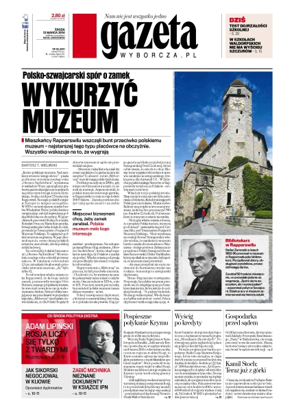 Mieszkańcy Rapperswilu wszczęli bunt przeciwko polskiemu muzeum – najstarszej tego typu placówce na obczyźnie; byli ministrowie Jacek Rostowski czy Michał Boni mogą być obciążeniem na listach PO do europarlamentu, a nie wartością dodaną; chorująca na alzheimera starsza mieszkanka Świdnika stanie przed sądem za „usiłowanie kradzieży sałatki warzywnej”; dyplomaci opowiadają, co się działo, nim padły słynne słowa do Rady Majdanu: „Jeśli nie podpiszecie, wszyscy zginiecie”; parlamenty w Symferopolu i Moskwie przyjmują ustawy pozwalające Rosji wchłonąć Krym; dlaczego Światowa Organizacja Zdrowia o połowę obniżyła rekomendowane dawki codziennego spożycia cukru; czy twoje dziecko jest gotowe do podjęcia nauki w szkole; już sześć banków oferuje kredyt w programie „Mieszkanie dla młodych”.