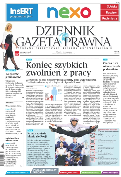 Zatrudnieni na czas określony zyskają dłuższy okres wypowiedzenia – taki będzie skutek wyroku Trybunału Sprawiedliwości UE; czarna lista nieuczciwych podatników; Krym radośnie kłania się Rosji; banki ograniczają lub zamykają dostęp do rachunków podatników; urząd kontra firma.