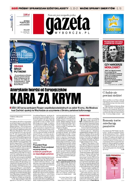 USA i UE karzą sankcjami Rosjan współodpowiedzialnych za zabór Krymu, ale Moskwa kusi Zachód: spokój na Wschodzie za uczynienie z Ukrainy państwa buforowego; wielkie zachodnie interesy w cieniu Krymu; dlaczego w Polsce ludzie o mentalności kilkuletnich dzieci siedzą w więzieniach; Wenezuela – zakupy z odciskiem palca; wesele sprzedanych marzeń.