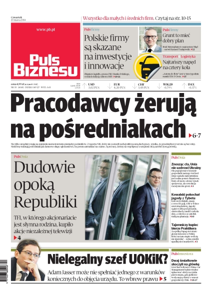 Nie tylko urzędnicy mają na sumieniu marnotrawienie pieniędzy podatników, z raportu NIK, który nie zostawił suchej nitki na urzędach pracy, wynika, że przedsiębiorcy też nie są bez winy; TFI, w którego akcjonariacie jest słynna rodzina, kupiło akcje niezależnej telewizji; polskie firmy są skazane na inwestycje i innowacje; brak biznesplanu to najczęstszy błąd — mówi Ryszard Tadajewski; znosząc cła, Unia nie uzdrowi Ukrainy.