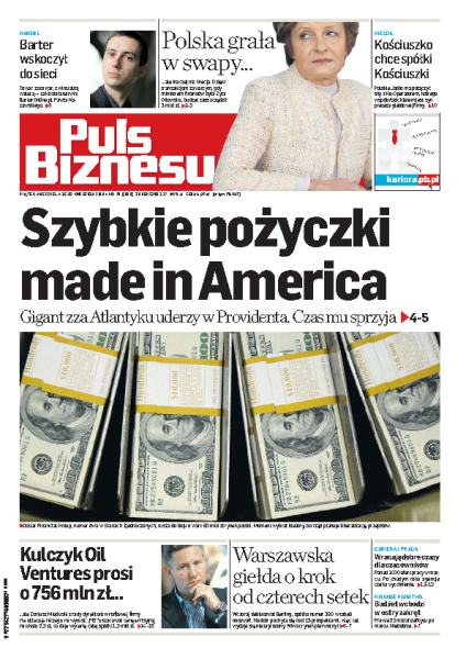 Polska i cztery inne kraje używały inżynierii finansowej do obniżenia kosztów obsługi długu publicznego; drugi na amerykańskim rynku spec od szybkich pożyczek rozkręca swoją działalność w Polsce; barter wraca do łask – firmy wracają do handlu bezgotówkowego; agencje pracy tymczasowej odrabiają straty; Kulczyk Oil zamierza zdobyć 756 mln zł; na rozliczenie podatku giełdowego zostało już tylko 14 dni; rynek miedzi uwierzył w powrót wielkiej hossy.