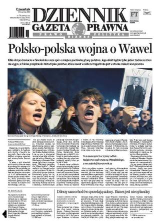 Kilka dni po dramacie w Smoleńsku rusza spór o miejsce pochówku głowy państwa; na pogrzeb Lecha Kaczyńskiego przybędzie przynajmniej 80 przywódców; jakie są obowiązki kierowcy biorącego udział w kolizji, kiedy konieczne jest wezwanie policji; większość rozwiązań wprowadzonych przez rząd w celu ograniczenia skutków kryzysu jest przez przedsiębiorców oceniana pozytywnie; PGE planuje do roku 2020 zdecydowanie zwiększyć moce wytwórcze.
